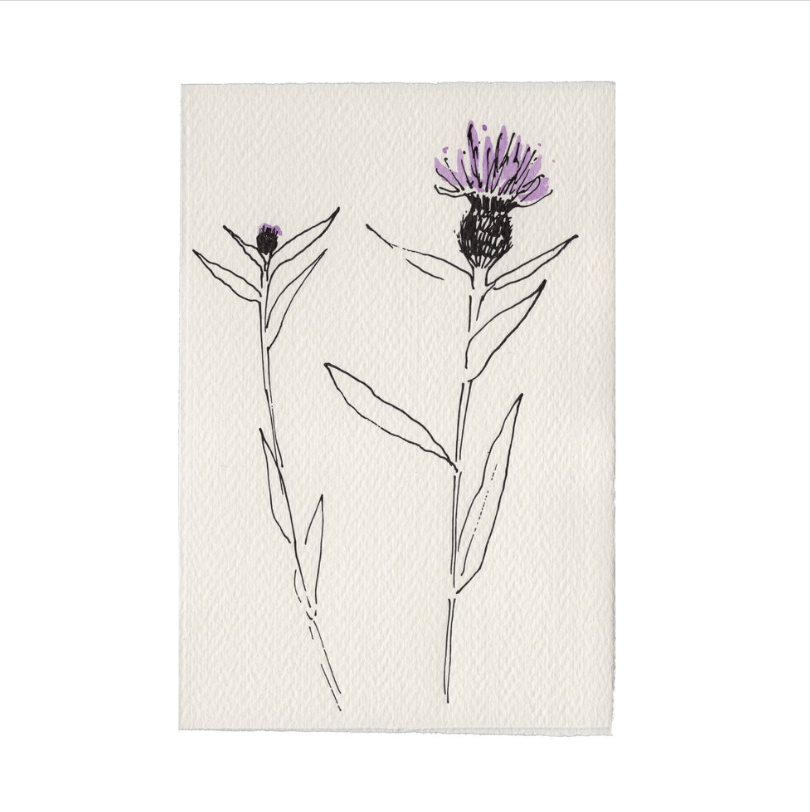 Founded by illustrator Caroline Kent, All Scribble & Daub cards are traditionally letterpress-printed from original dip pen and ink drawings and then individually hand-painted on luxurious Italian deckle-edged cards with matching envelopes.